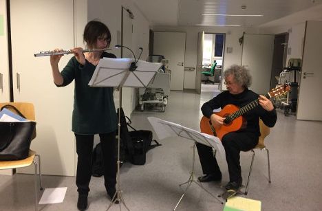 Sabine Hübner, Flöte & Christian Leyh, Gitarre, Adventsmusik auf den Stationen (Rechts der Isar, München, Dezember 2017)